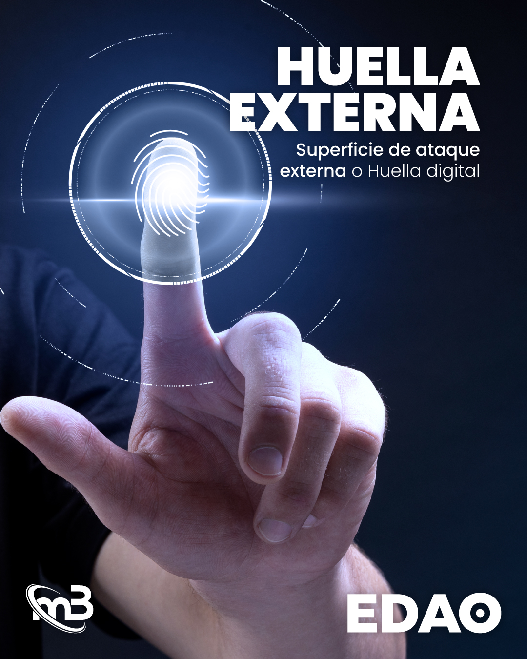 La superficie de ataque externa o huella digital: Todos los activos, servicios, sistemas expuestos a internet que pertenecen a una organización y pueden ser descubiertos, accedidos o atacados por factores externos